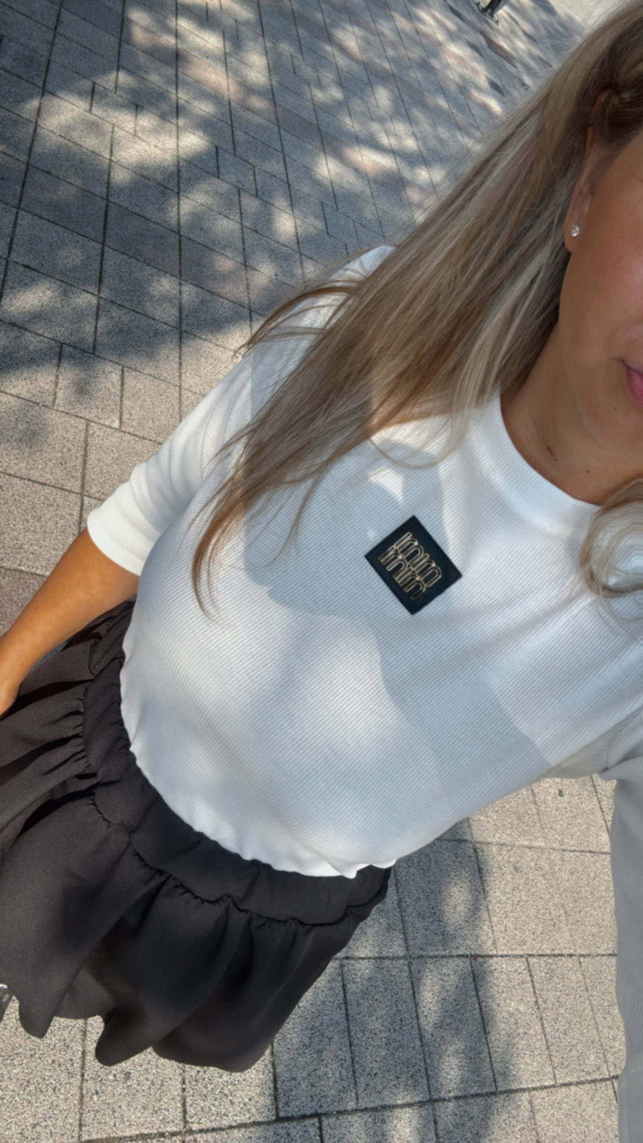 Štýlová čierna suknička s jemným riasením v páse, ktorá pôsobí veľmi moderne a pohodlne. Má voľnejší strih, takže krásne sedí na veľkosť M,L,XL (pri S, XS môže byť voľnejšia). Perfektný kúsok na každodenné nosenie aj na kombinovanie s elegantnejšími topmi.
