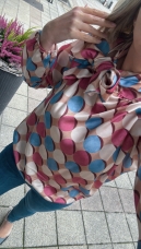 Štýlová dámska blúzka s originálnym retro vzorom v odtieňoch modrej, vínovej a béžovej. Výrazná mašľa pri krku dodáva eleganciu a šmrnc – perfektne sa hodí do práce aj na špeciálne príležitosti. Ľahučký, príjemný materiál a voľnejší strih zaručia pohodlie počas celého dňa.