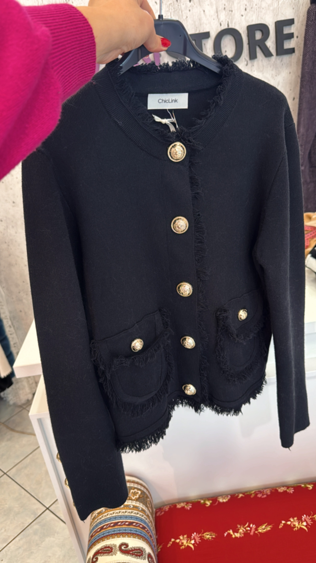 Čierne zoštíhľujúce sako so zlatými gombičkami príjemný elastický materiál ktorý sa pekne prispôsobí na postavu.